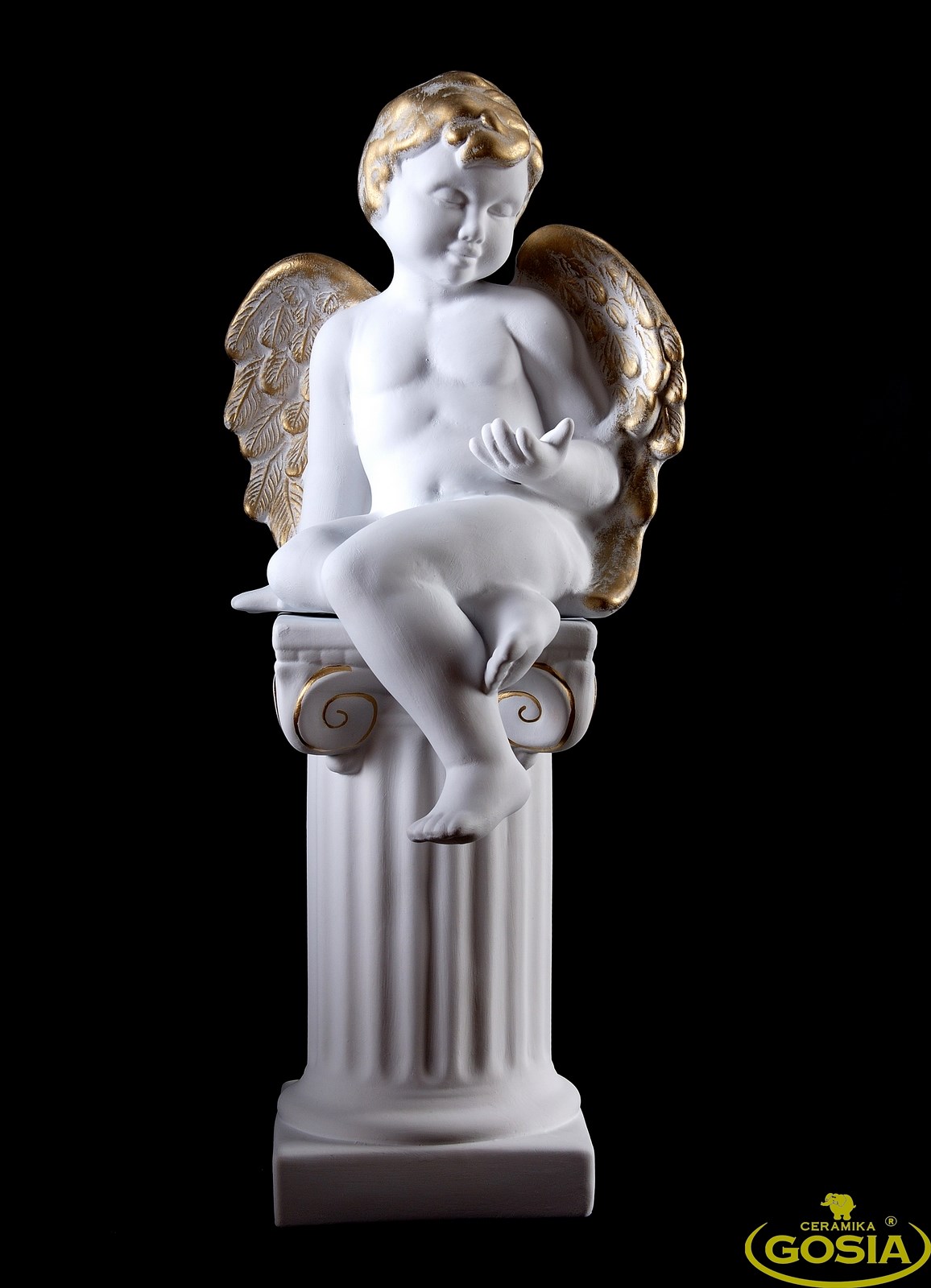 Amor bardzo duży na kolumnie wykonany z ceramiki. Wykonany i malowany ręcznie.
