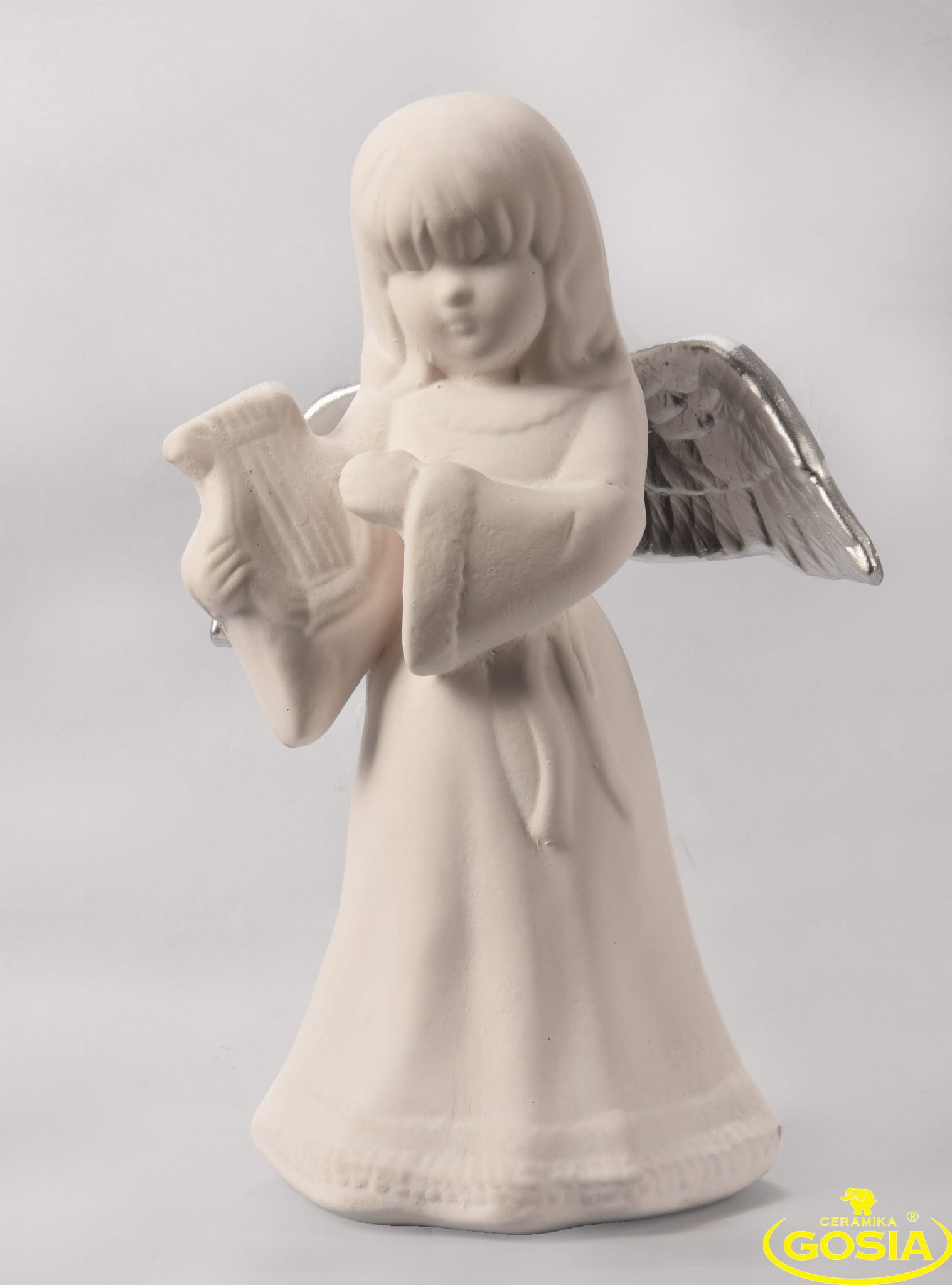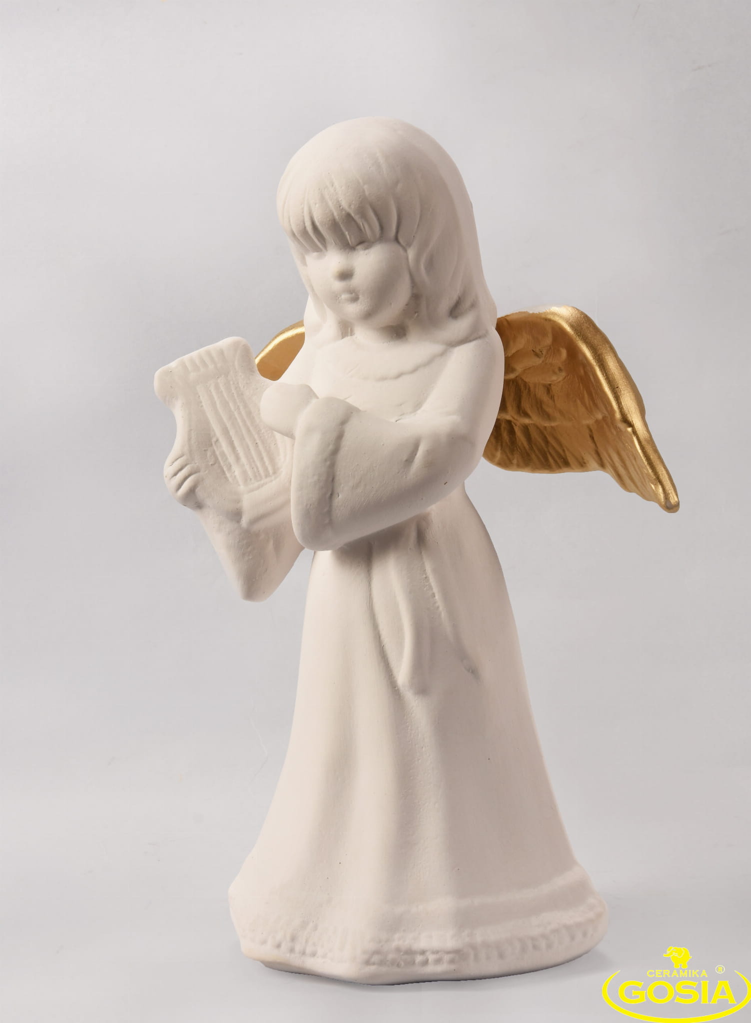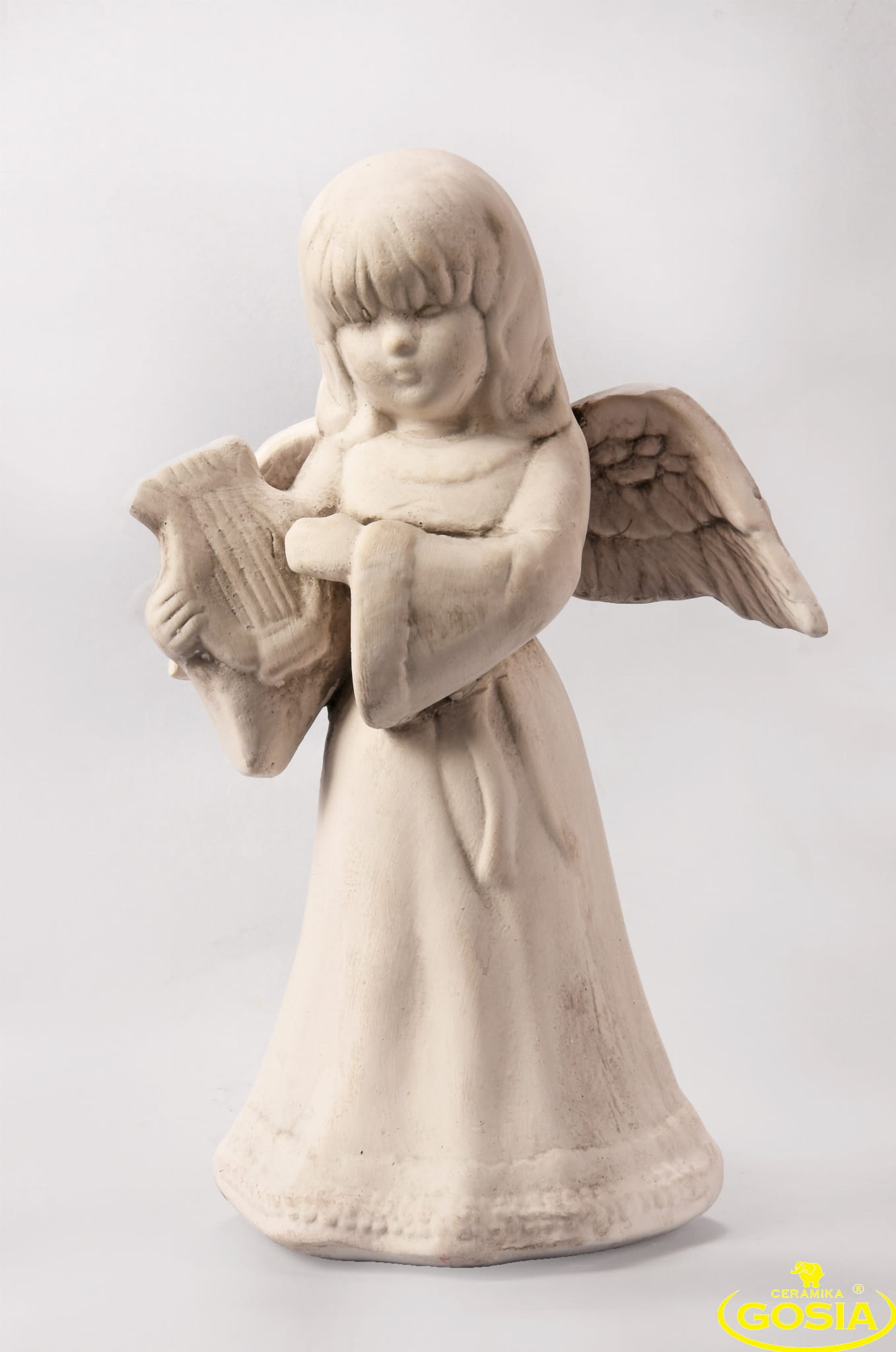 Anioł z harfą - figurka ceramiczna