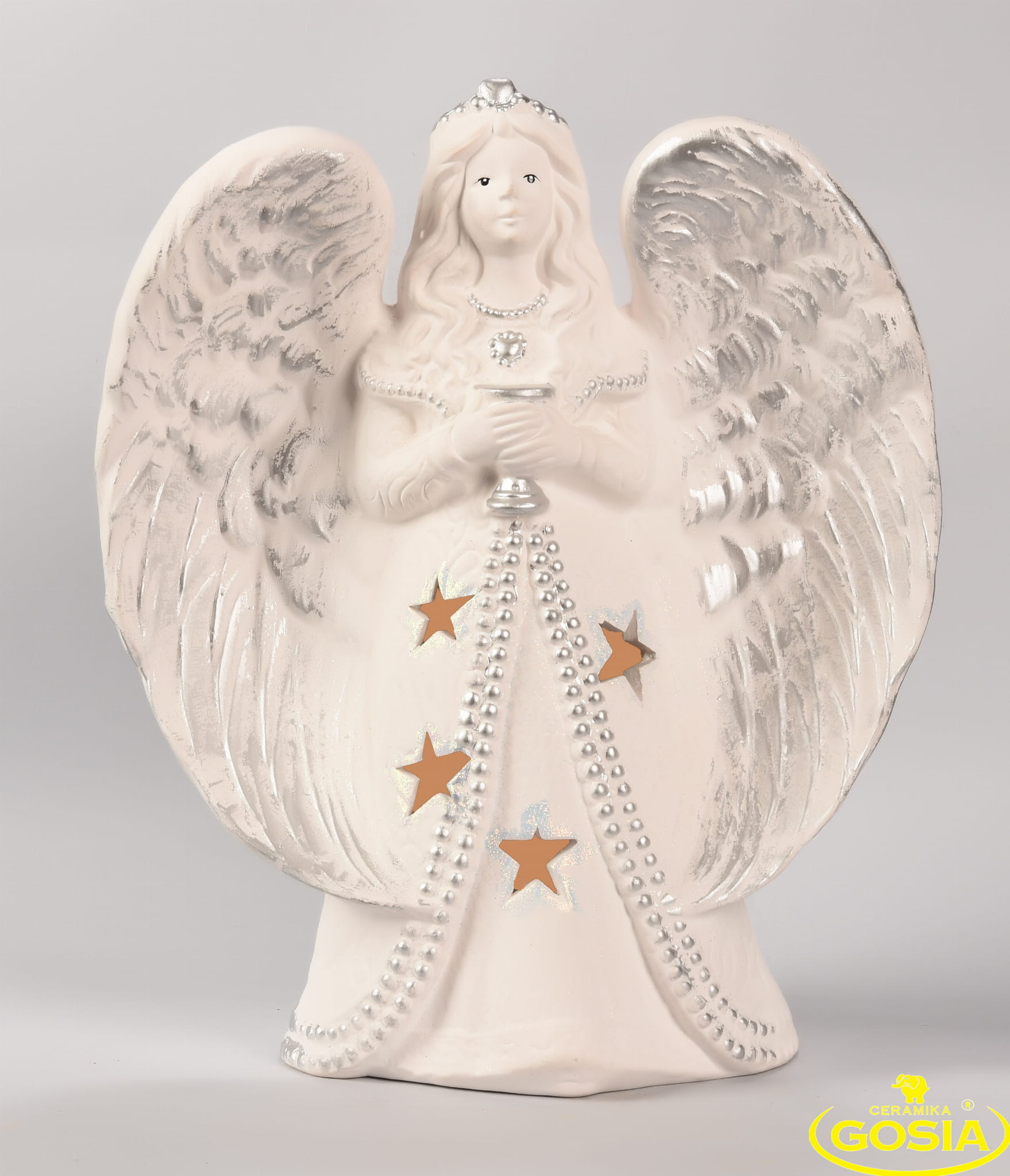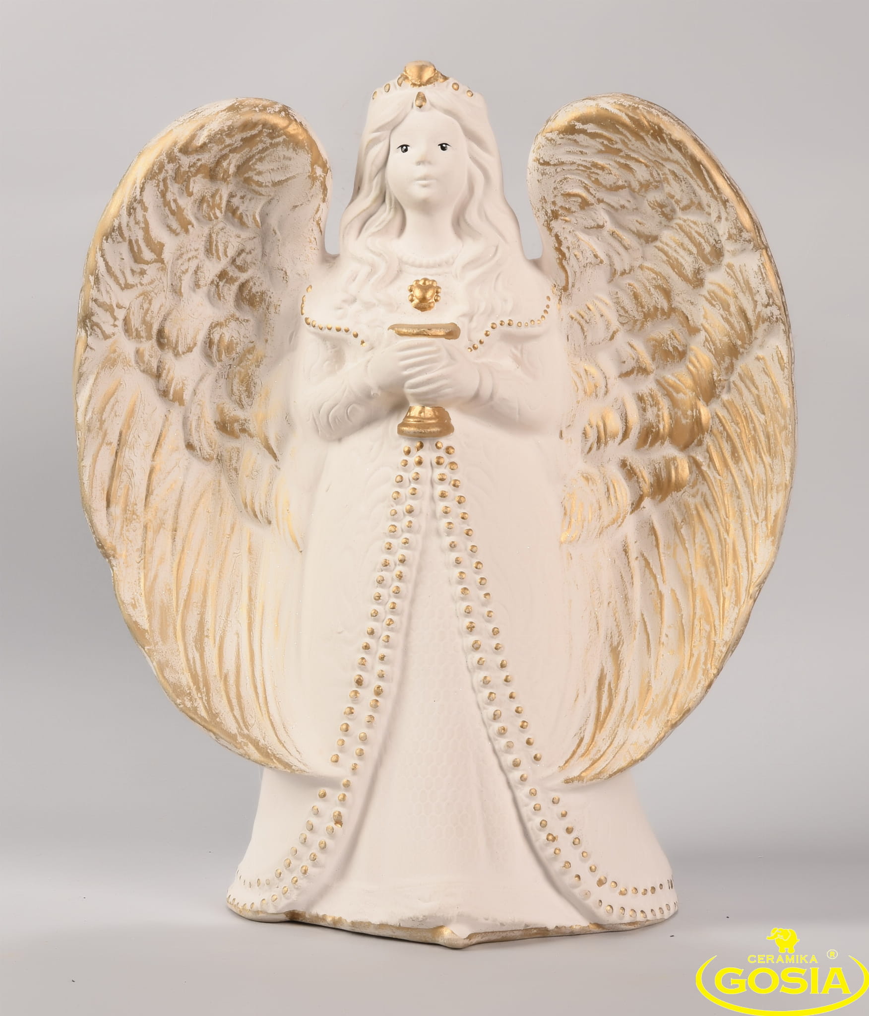 Anioł z kielichem wykonany z ceramiki. Wykonany i malowany ręcznie.