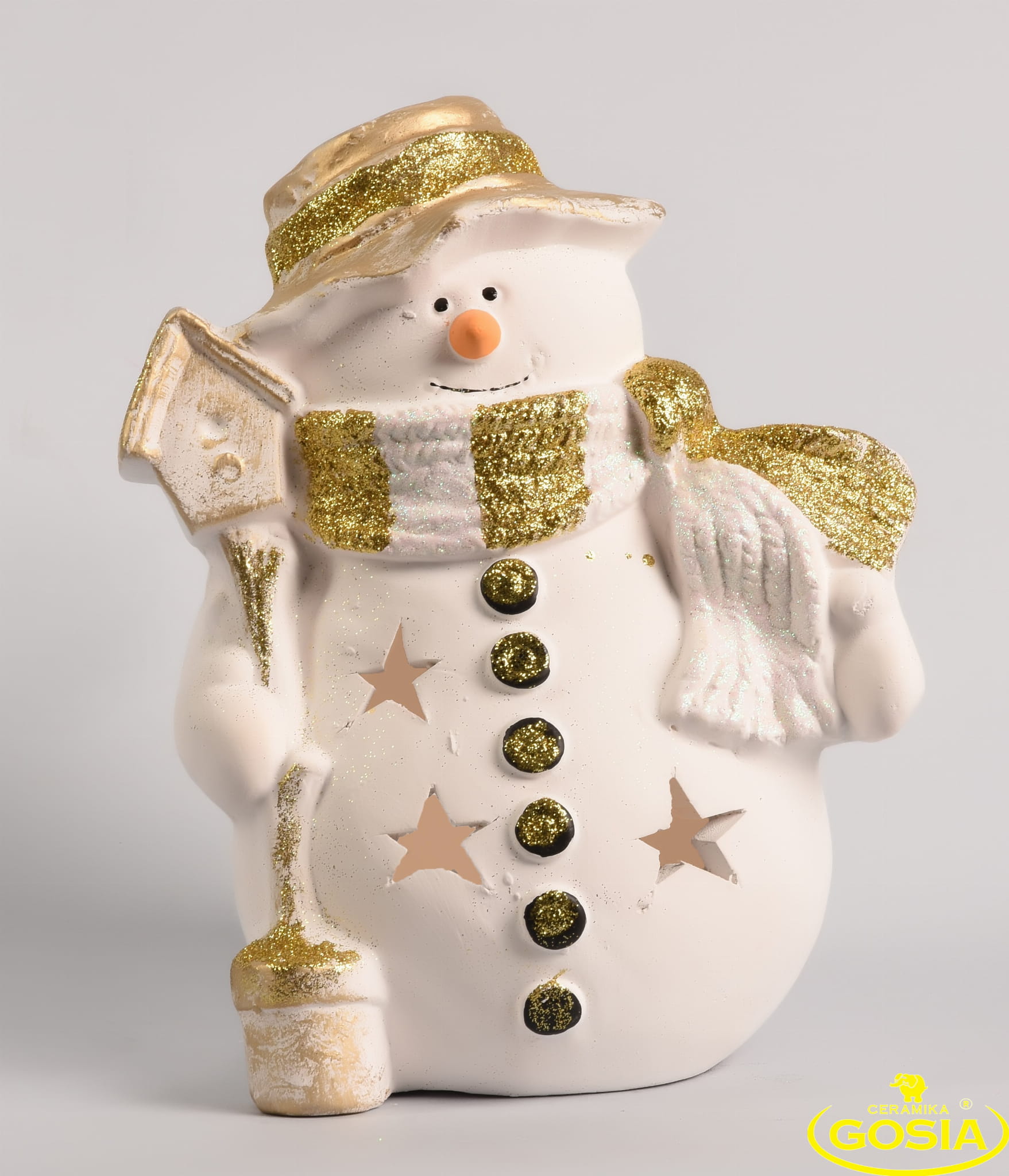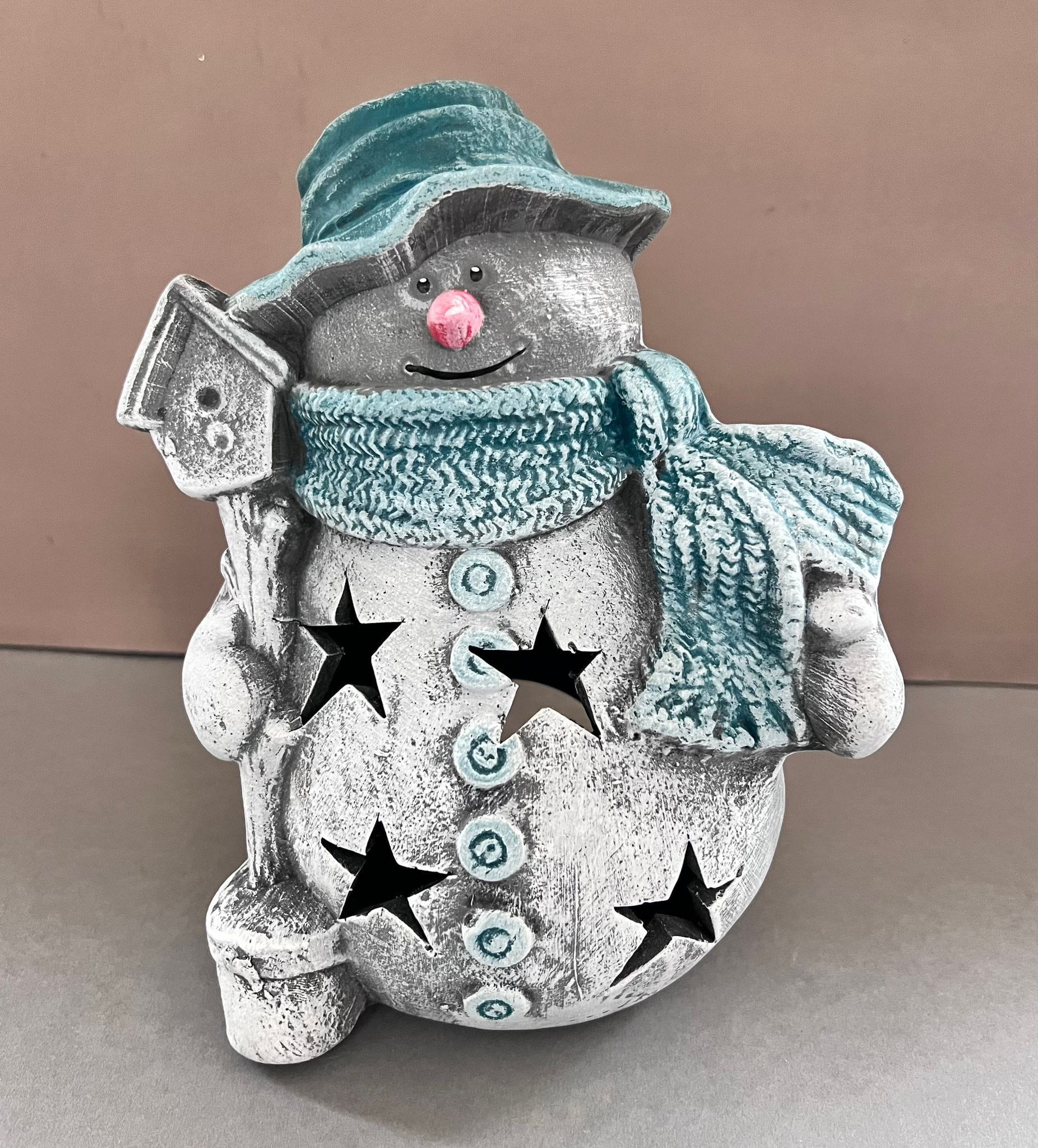 Bałwanek z karmnikiem wykonany z ceramiki. Wykonany i malowany ręcznie.