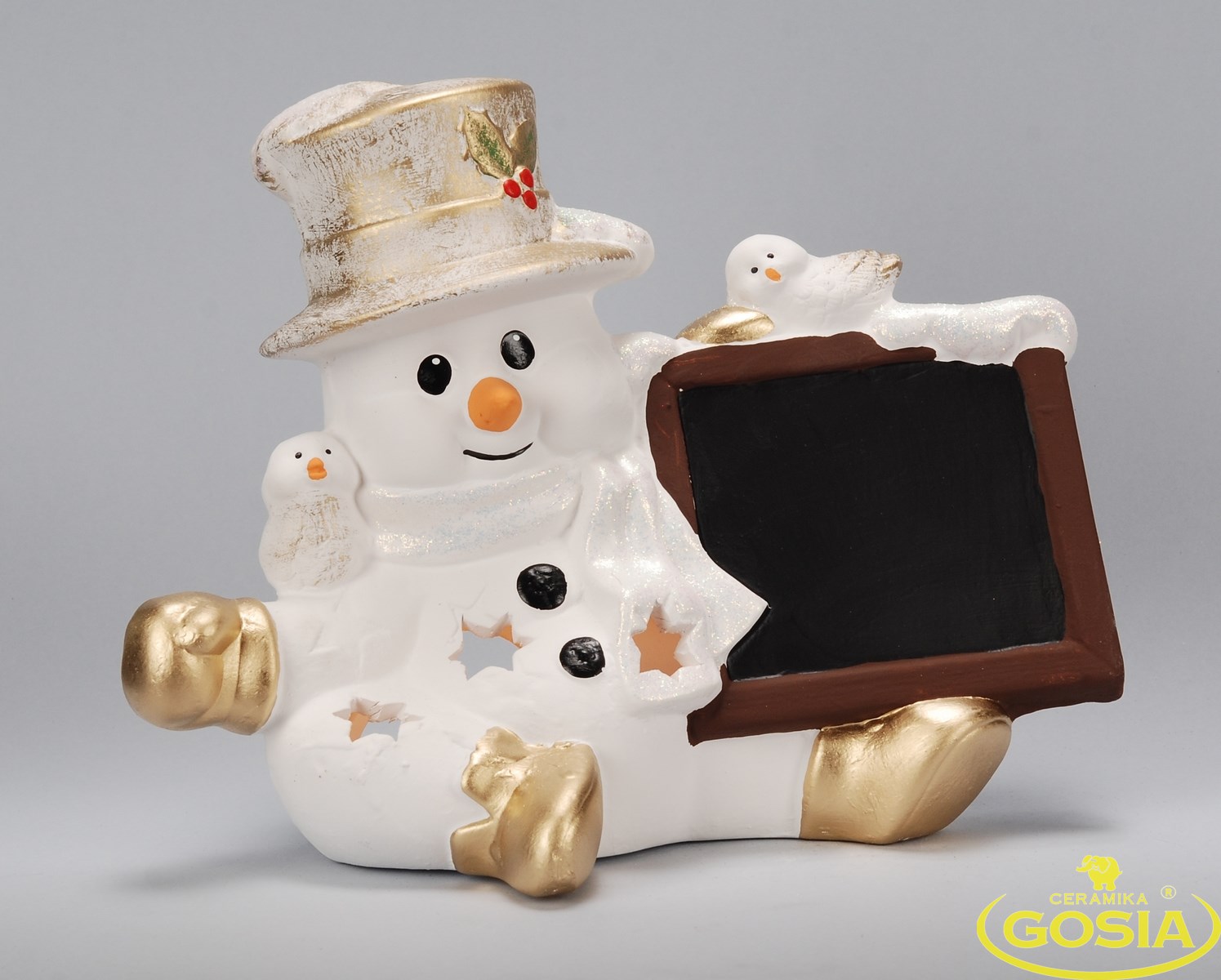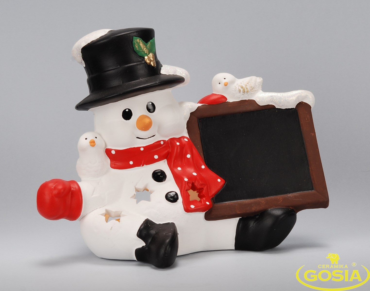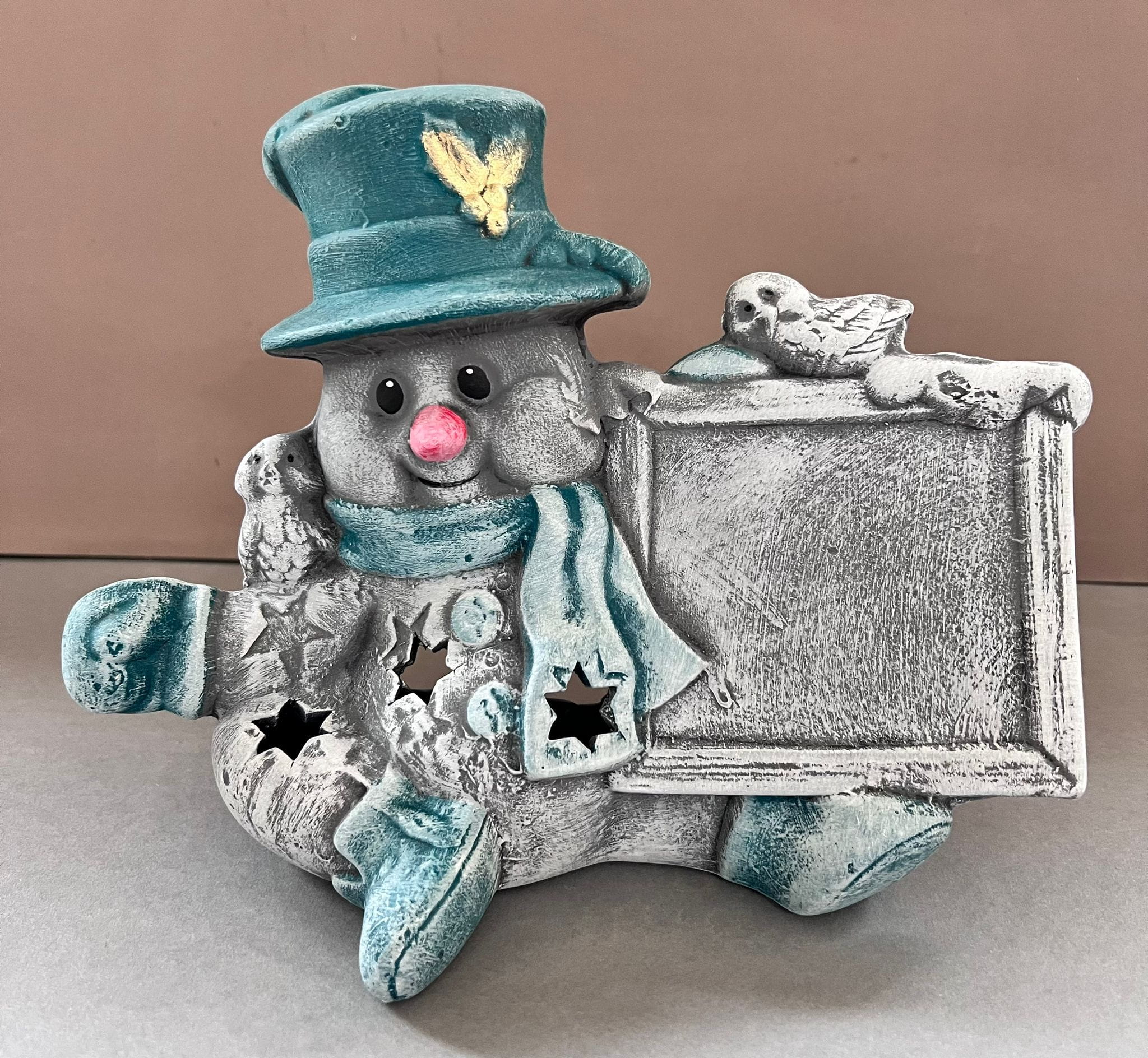 Bałwanek z tabliczką - figurka ceramiczna