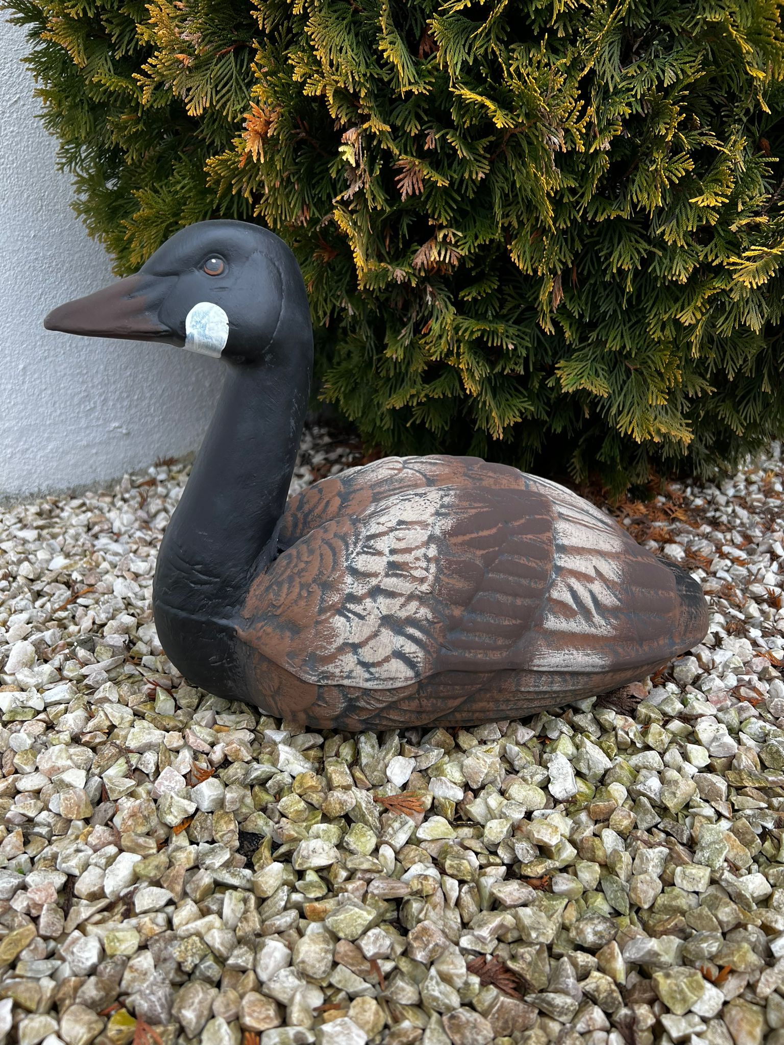 Gęś pływająca z długą szyją - figurka ceramiczna ogrodowa