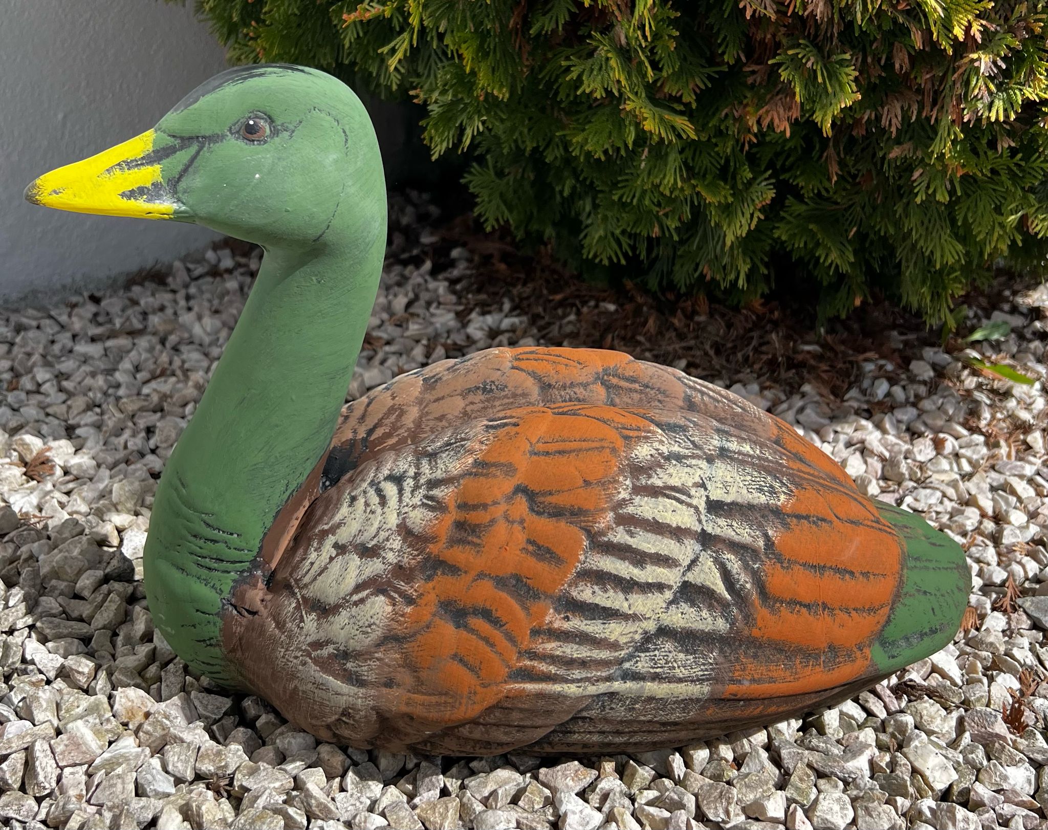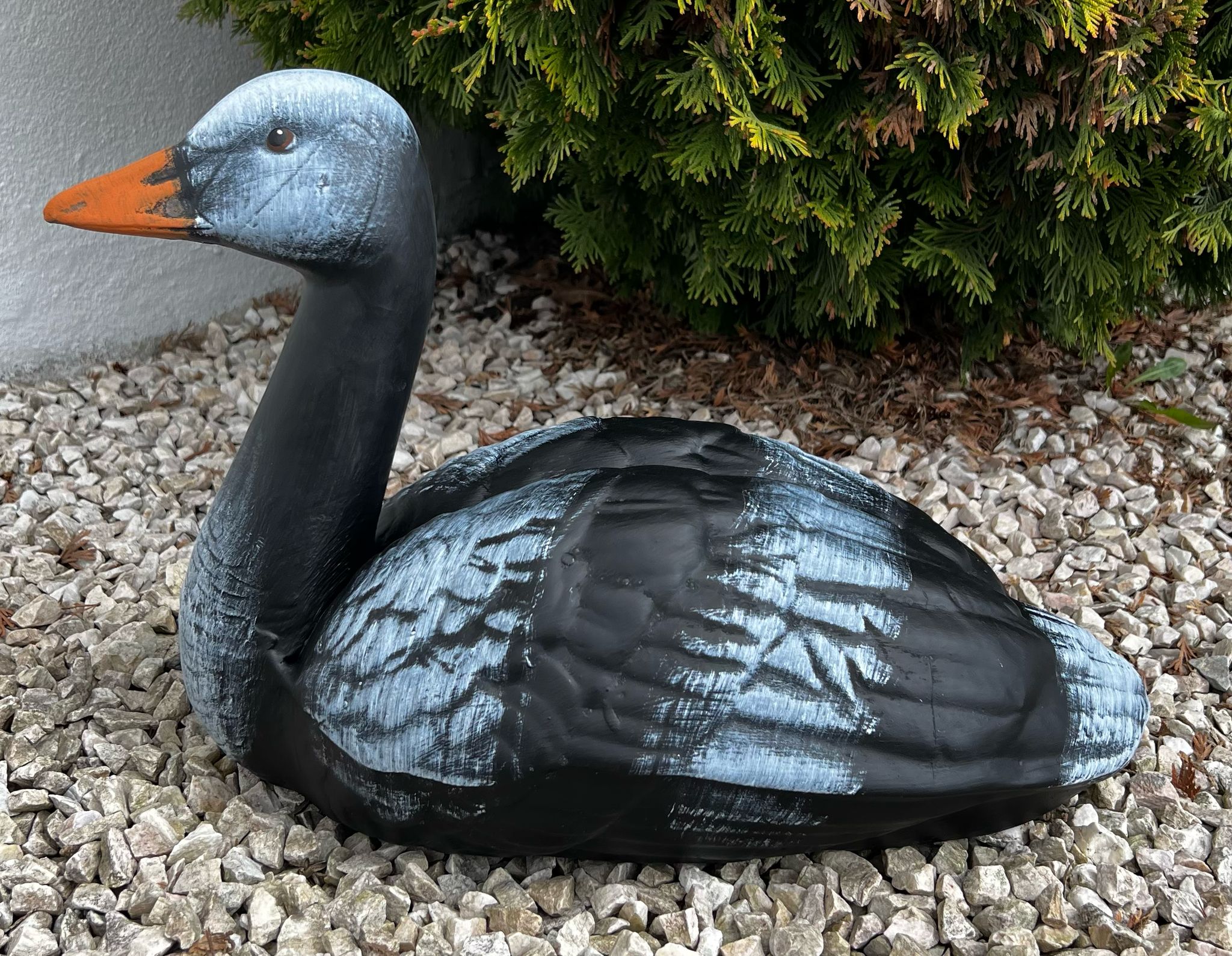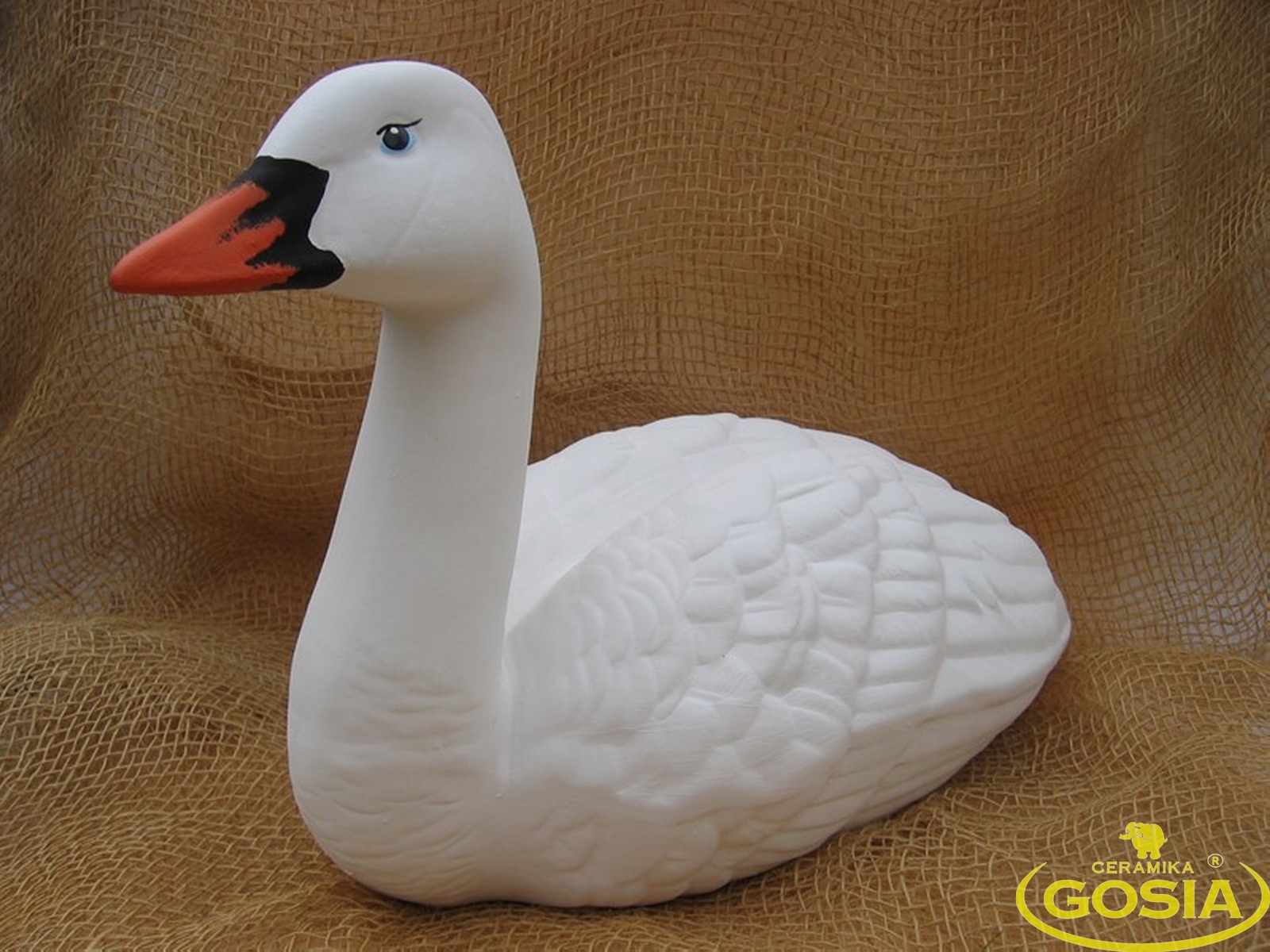 Gęś pływająca z długą szyją wykonana z ceramiki. Wykonana i malowana ręcznie.