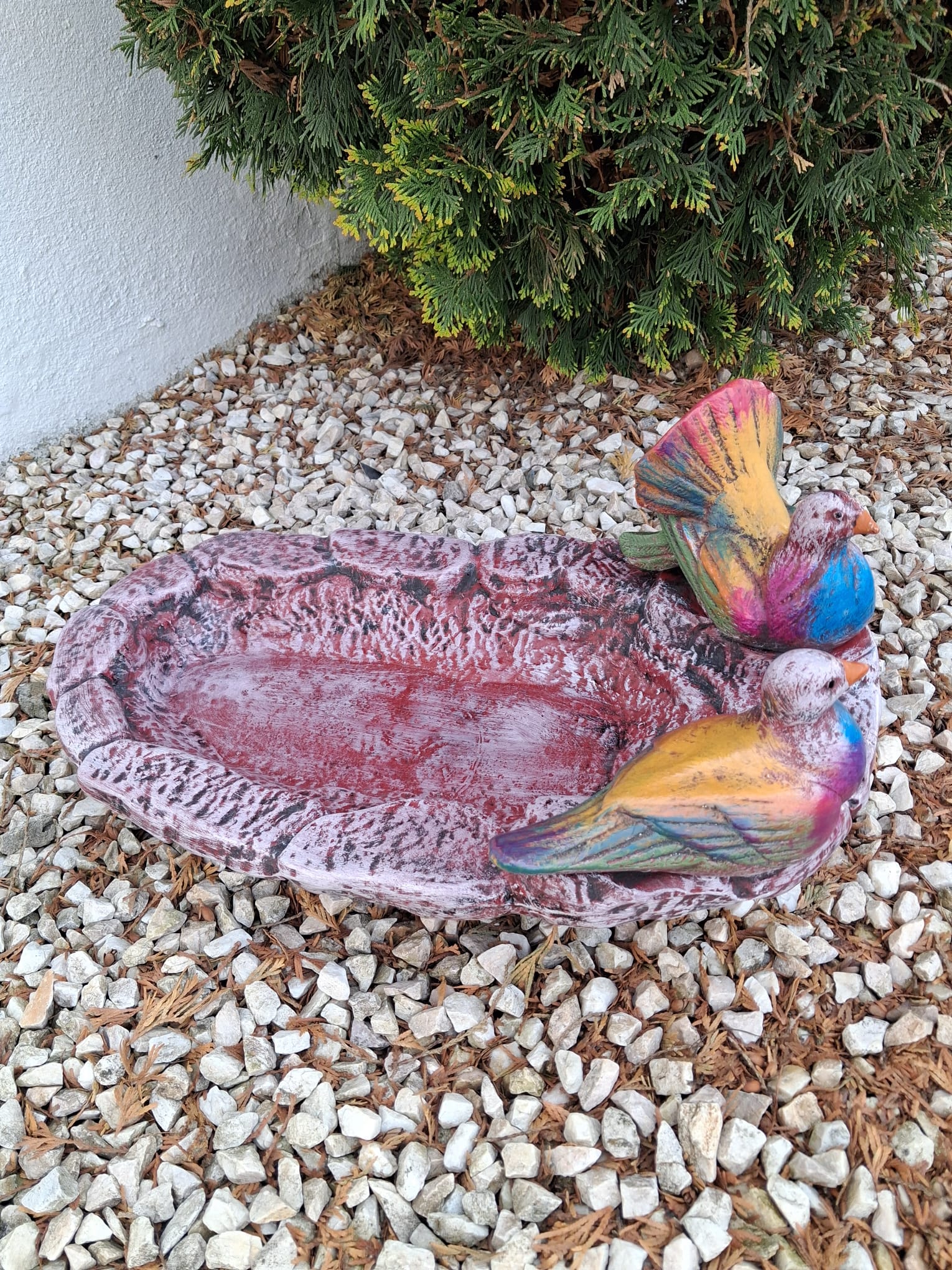 Poidło dla ptaków z gołębiami